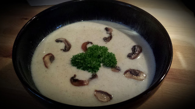 Pour the soup into clean pan and stir in the fried mushrooms. Heat until very hot and adjust the seasoning. Add the cream, if used.